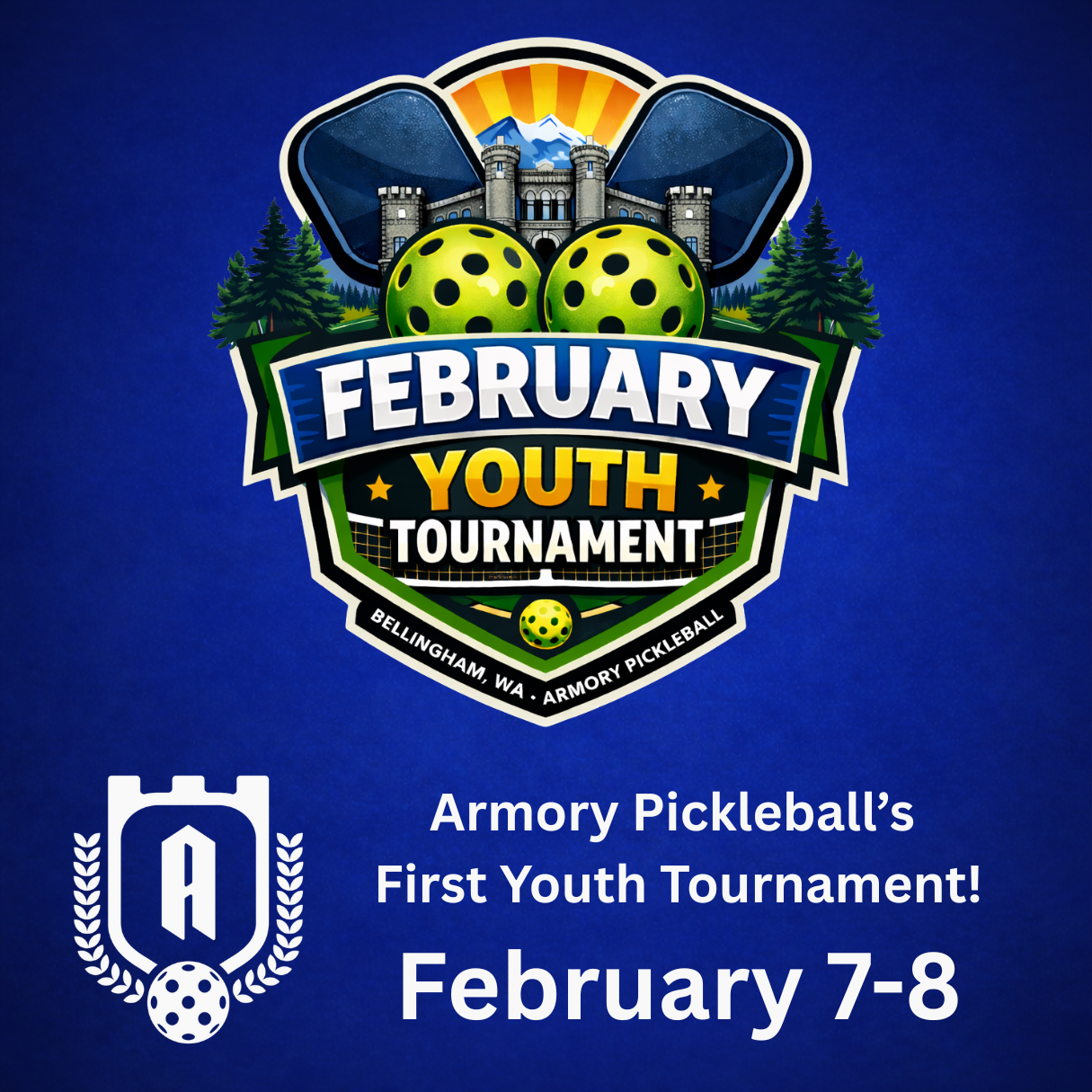 Join us at Armory Pickleball Bellingham for our first-ever Youth Tournament, February 7-8! We encourage everyone to stop by and cheer on the next generation of players, especially our local kids who've been building their skills in the Armory Youth Program. A full schedule for the weekend is below!